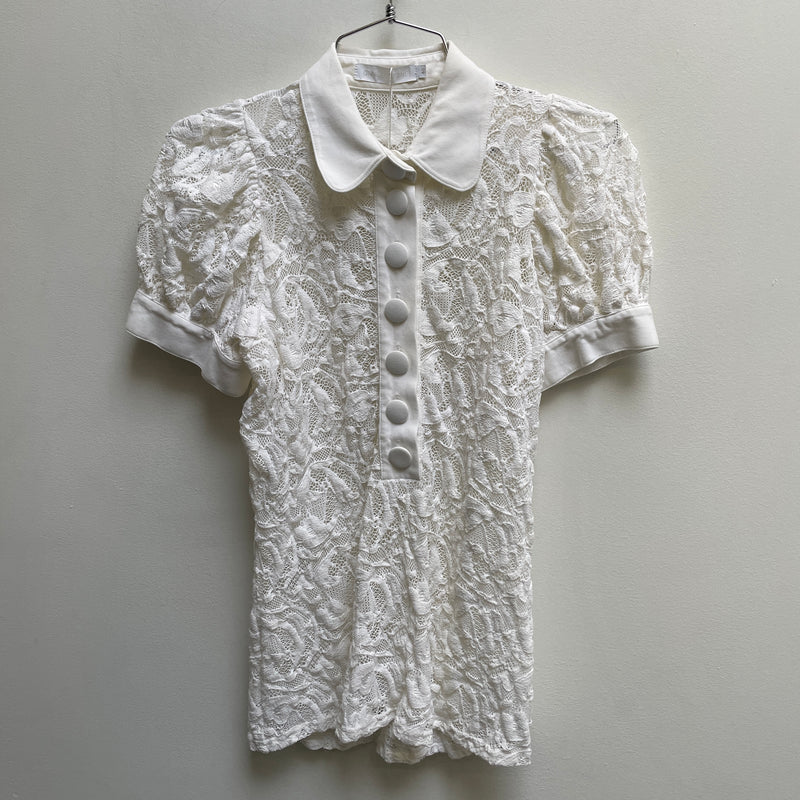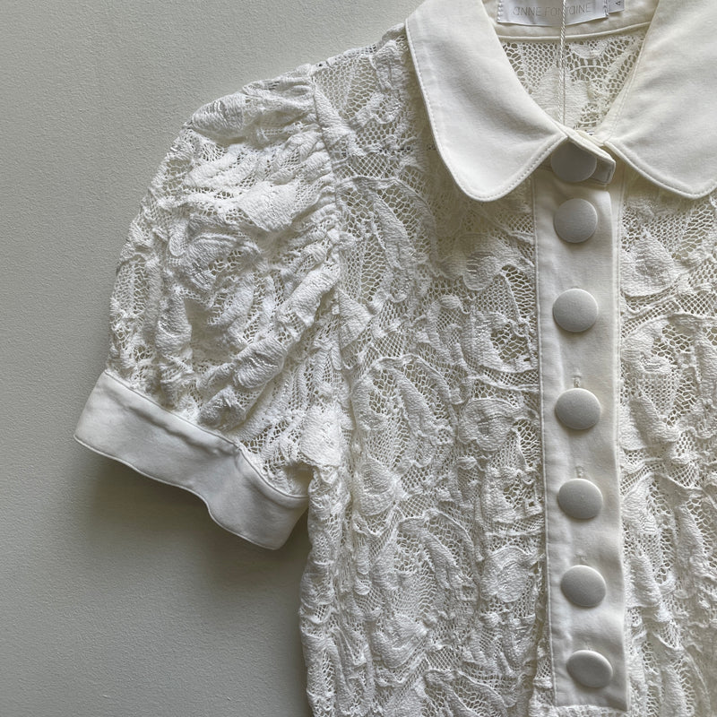 00s Anne Fontaine Lace Puff Sleeve Polo