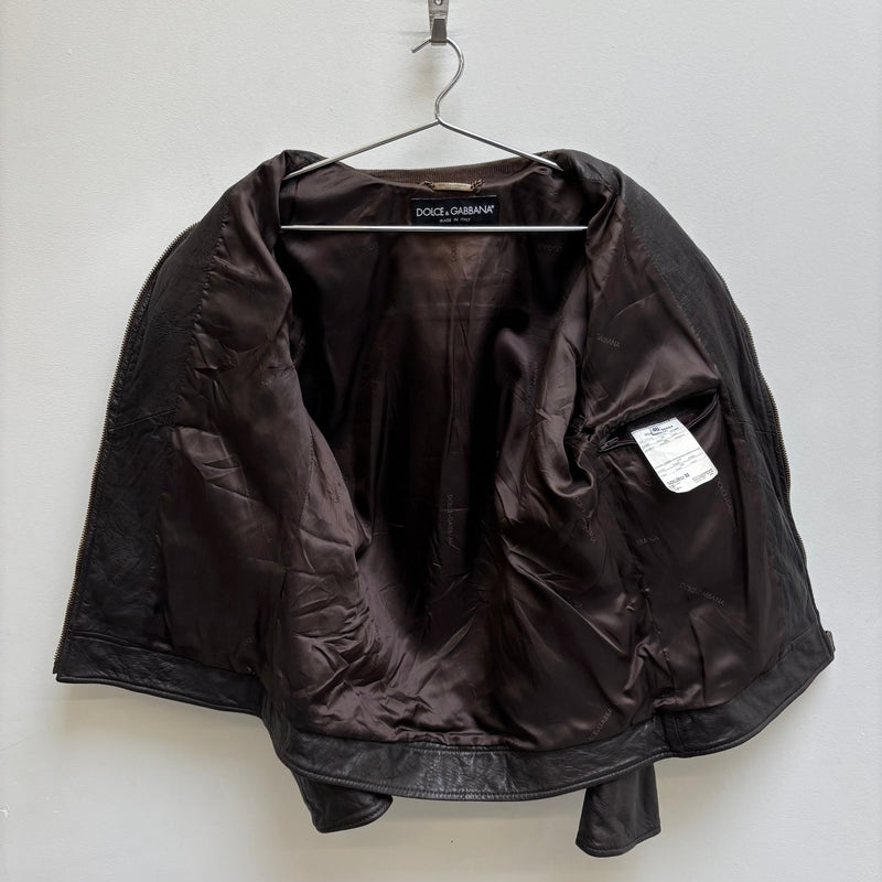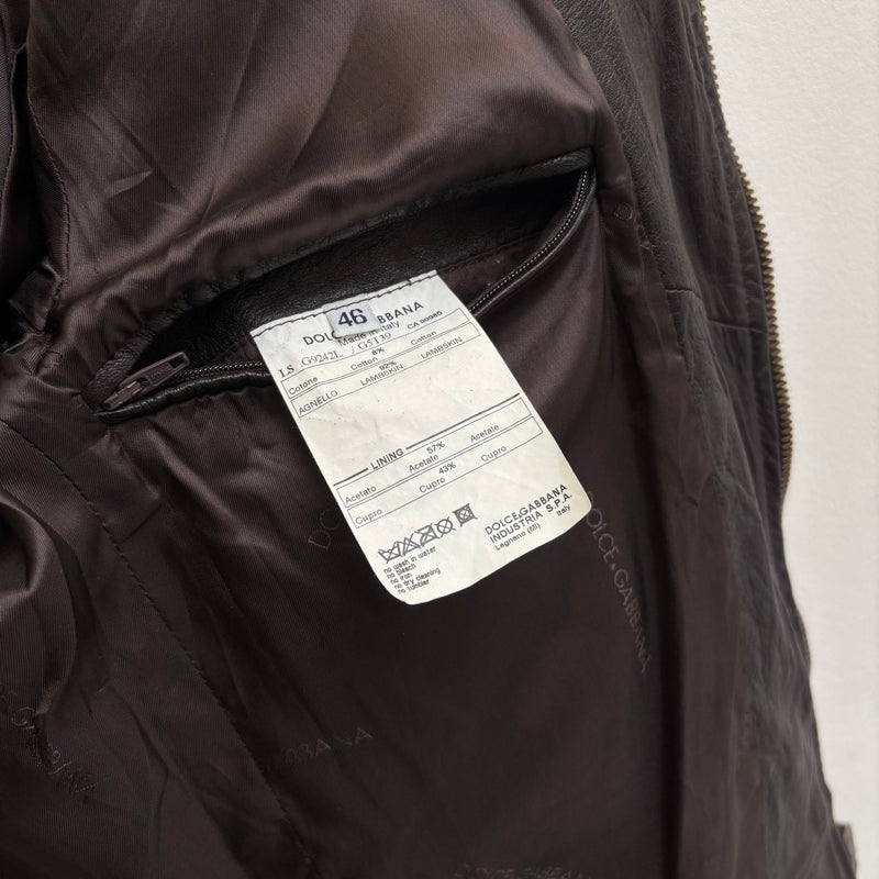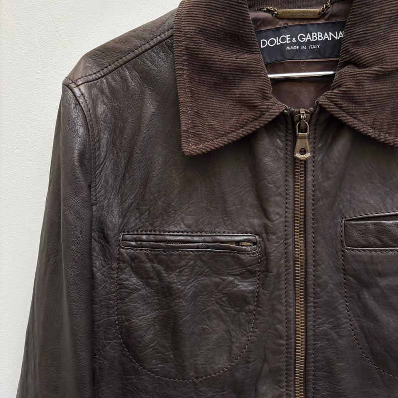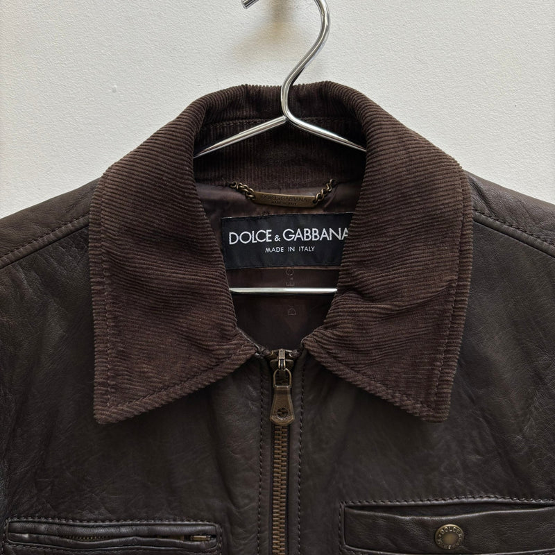 00s Dolce & Gabbana Corduroy Collar Lambskin Leather Jacket