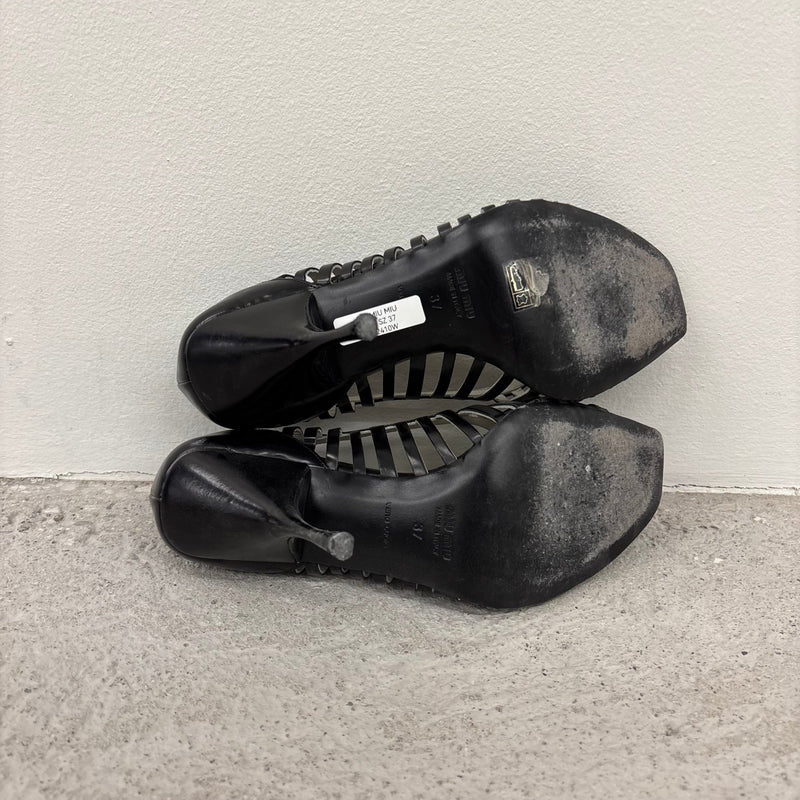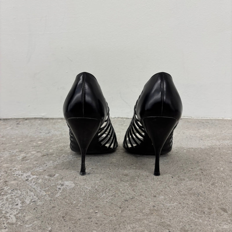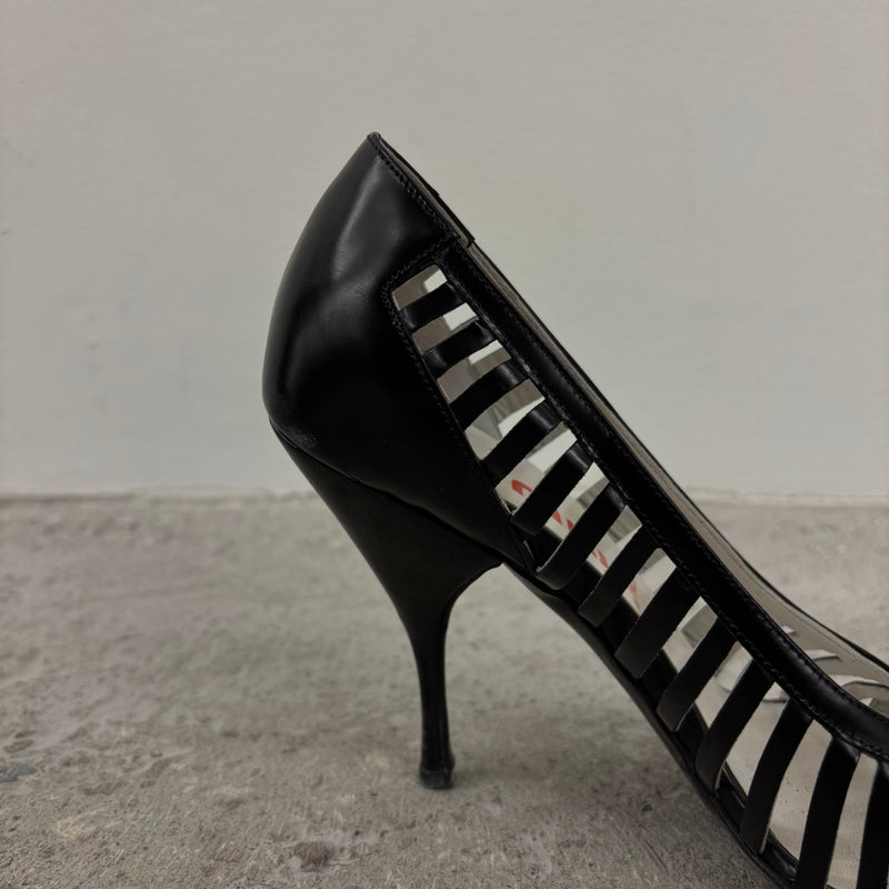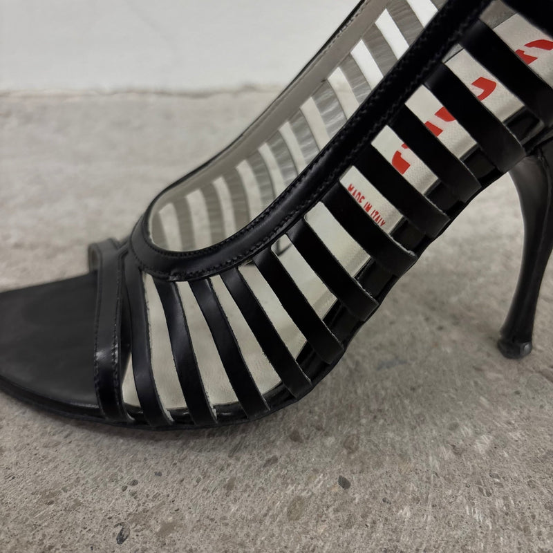 00s Miu Miu Caged Open Toe Leather Heels
