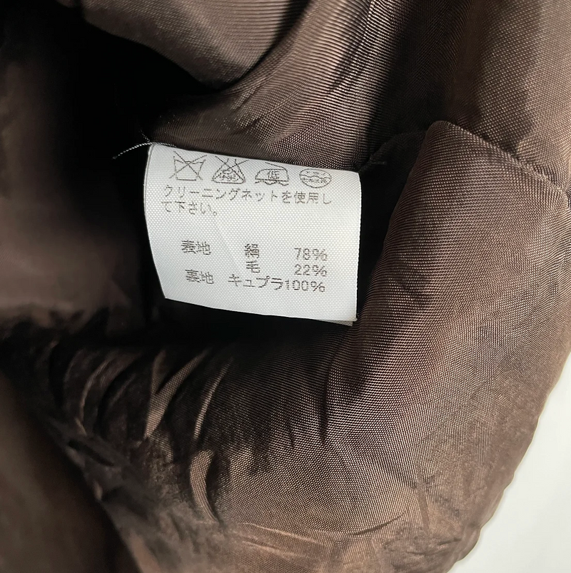 brown, mid weight, straight cropped fit, three buttons, minor shoulder pads