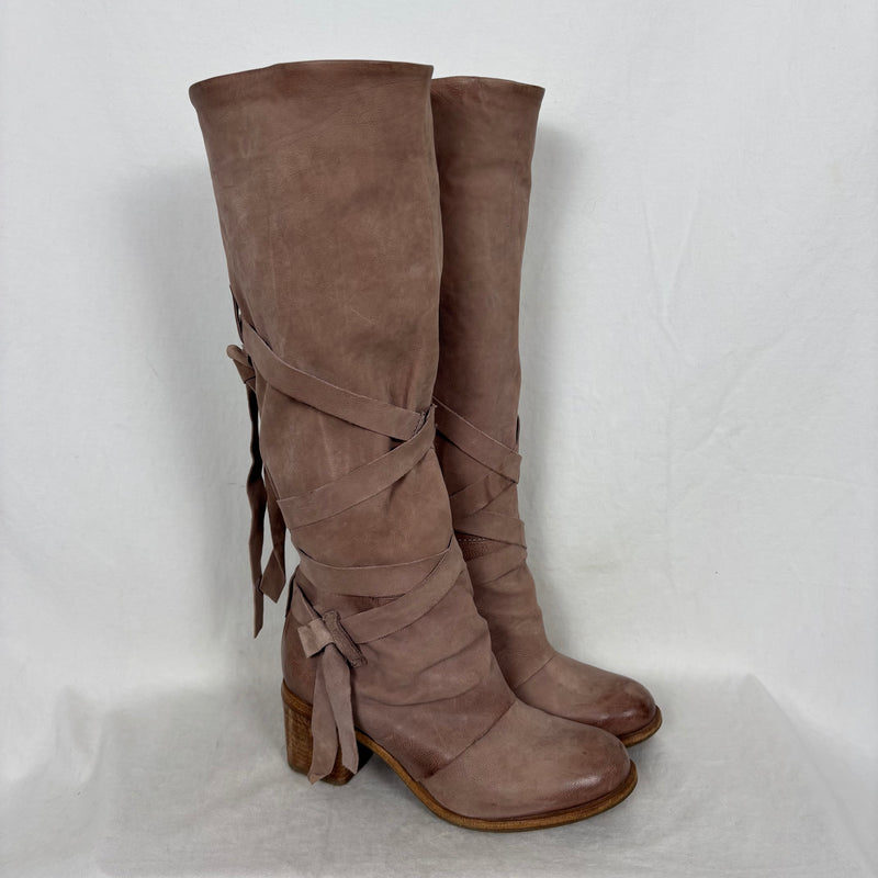 A.S. 98 Wrap Up Knee High Leather Heel Boots